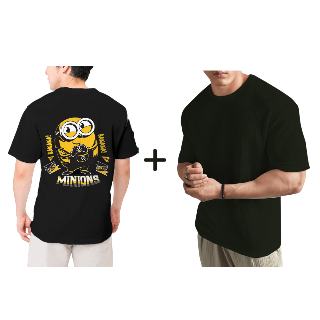 Combo ( Minions + Black Polyester Blend Oversized Fit Men’s T-Shirt )